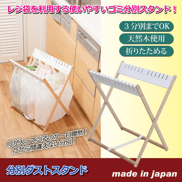 - 折りたたみゴミストッカー/分別ダストスタンド 木製 日本製 (室内/屋外/アウトドア)