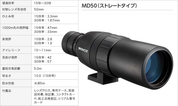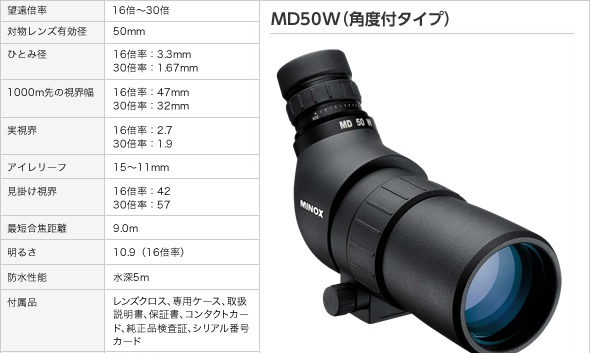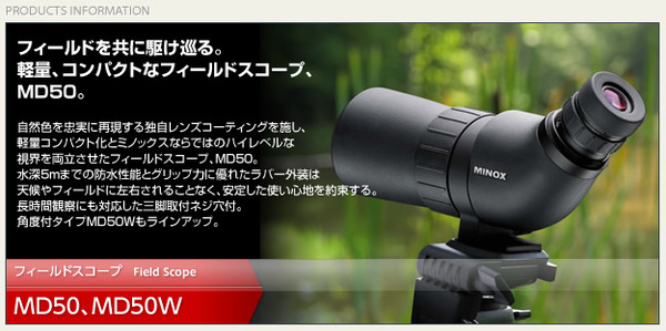 - フィールドスコープ/望遠鏡 【角度付きタイプ】 防水/軽量コンパクト ラバー外装 ミノックス 【日本正規品】 MD50W