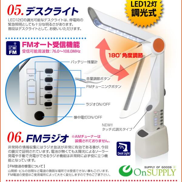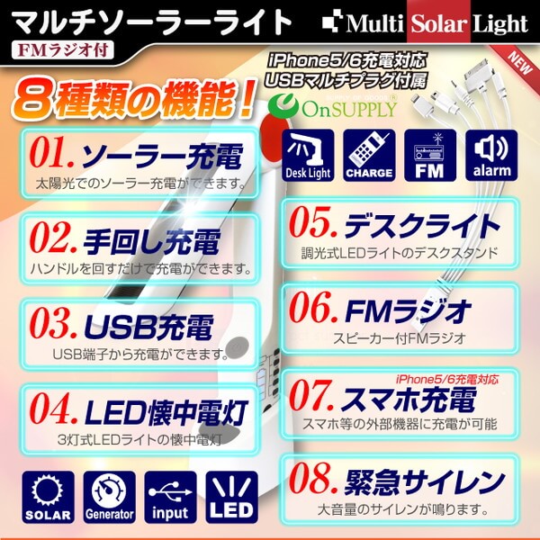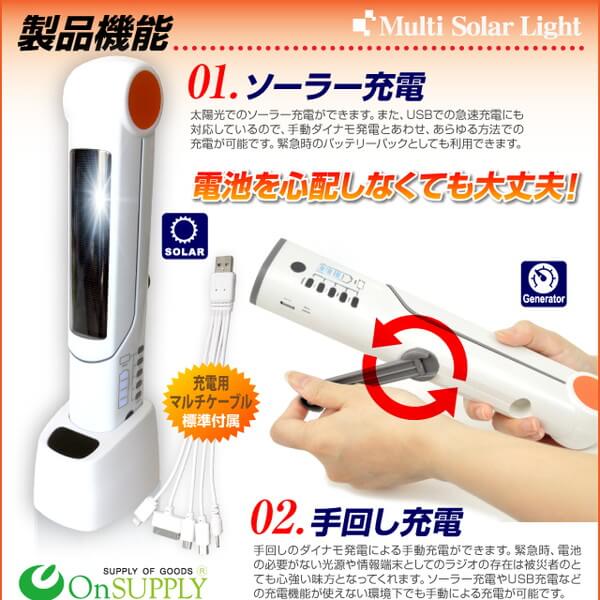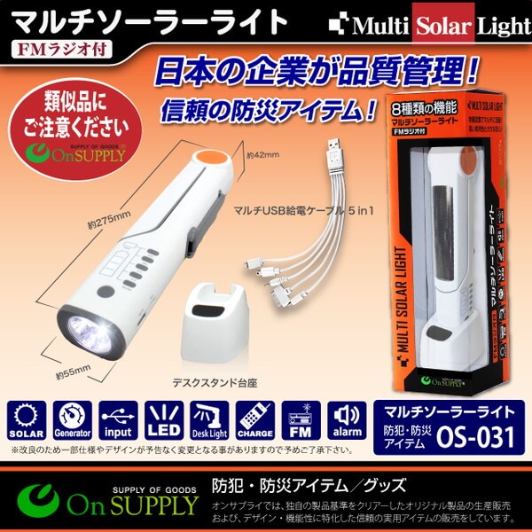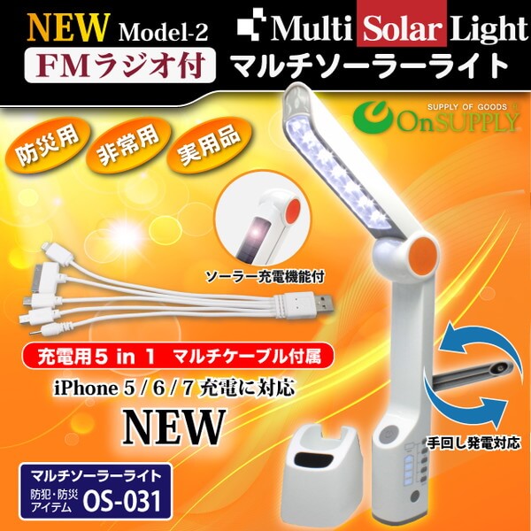- キャンプに役立つ マルチソーラーライト (OS-031) デスクライト 手回し発電 懐中電灯 FMラジオ