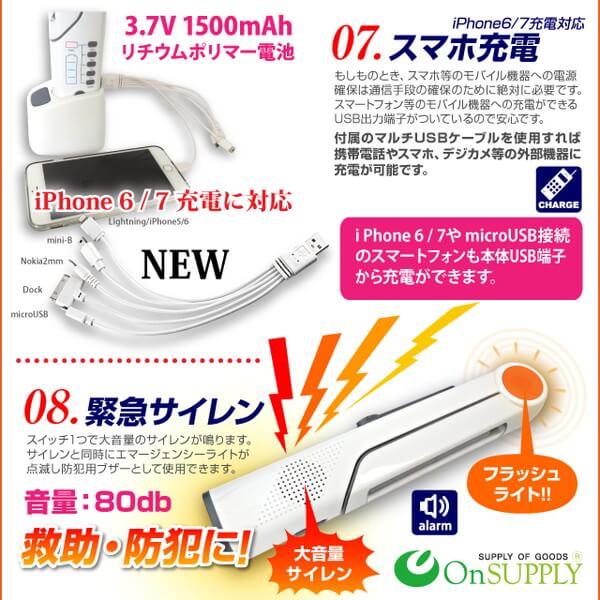 ・緊急サイレン(フラッシュライト付)