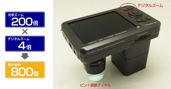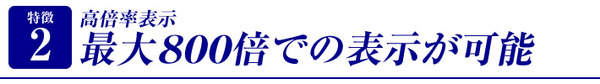 拡大倍率:200倍 × デジタルズーム:4倍で最大800倍での表示が可能。