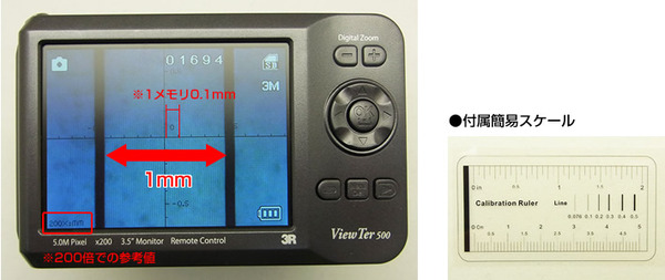 簡易スケールの表示が可能。簡易スケールは、60倍/80倍/150倍/200倍撮影時での目安値です。
