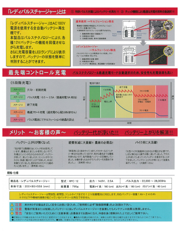 - 加地貿易 全自動バッテリー再生機 レディパルスチャージャー RPC-12